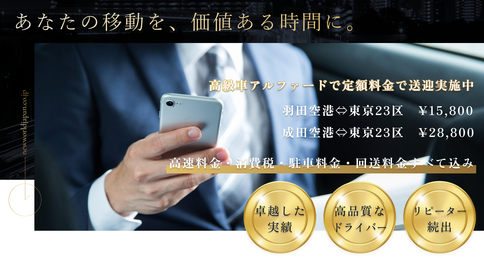 大切な移動時間をハイグレードの車両にて、ドライバーが目的地までお客様を安全に送迎いたします。